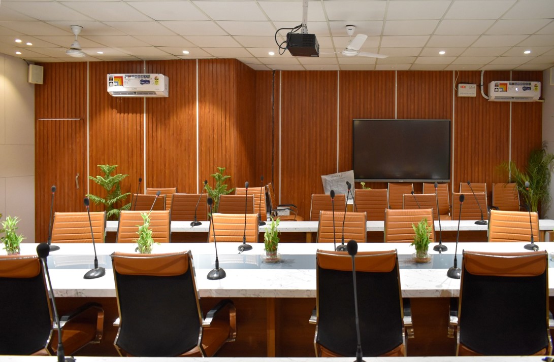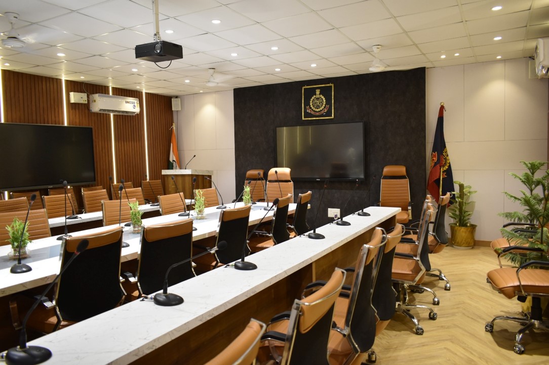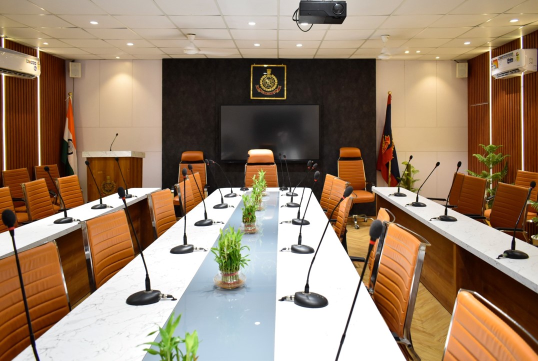 The architectural concept for the conference room at the Kashmiri Gate DCP office is a blend of contemporary elegance, where the luxurious use of wood and adherence to the "less is more" principle create a sophisticated and harmonious space.